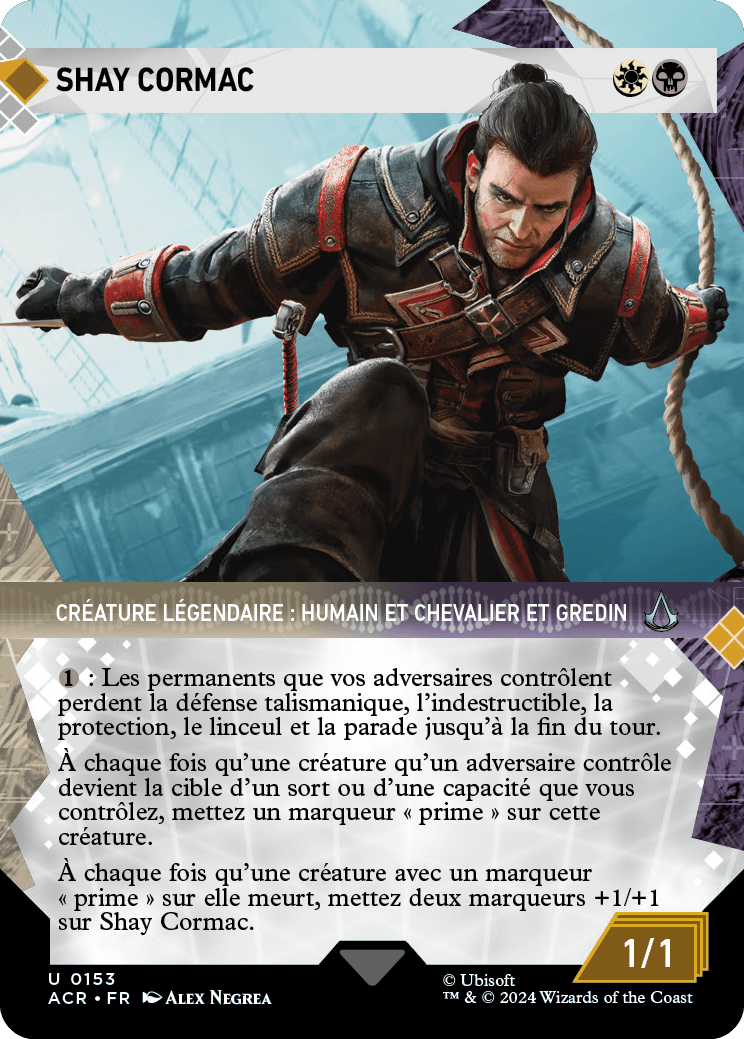 À chaque fois qu'une créature avec un marqueur « prime » sur elle meurt, mettez deux marqueurs +1/+1 sur Shay Cormac.