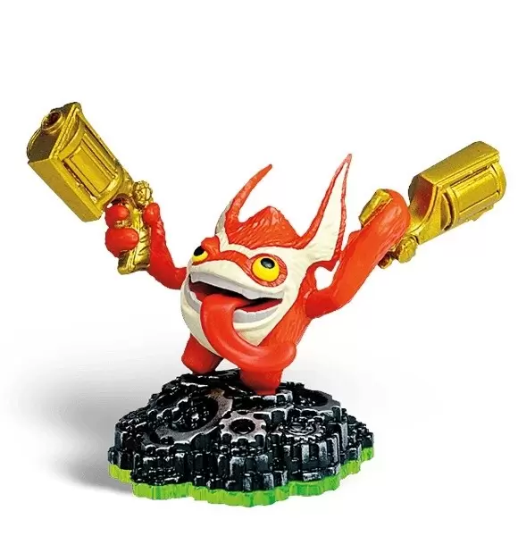 Trigger Happy est un des personnages du starter pack du premier jeu de la série Skylanders. Il est lié à l'élément « Tech ».