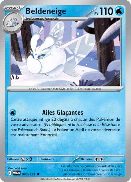 Ce Pokémon perçoit les courants d'air grâce à ses antennes. Il lance ses écailles dans l'air glacé, et elles tombent comme de la neige.