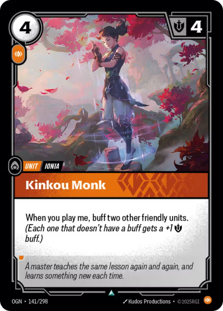 When you play me, buff two other friendly units. (Each one that doesn't have a buff gets a +1 might buff.)