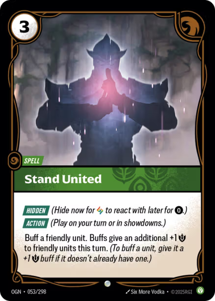 Buff a friendly unit. Buffs give an additional +1 Might to friendly units this turn. (To buff a unit, give it a +1 Might buff if it doesn't already have one.)