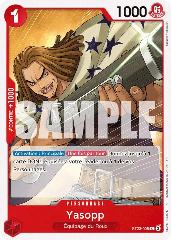 [Activation : Principale] [Une fois par tour] Donnez jusqu'à 1 carte DON!! épuisée à votre Leader ou à 1 de vos Personnages.
