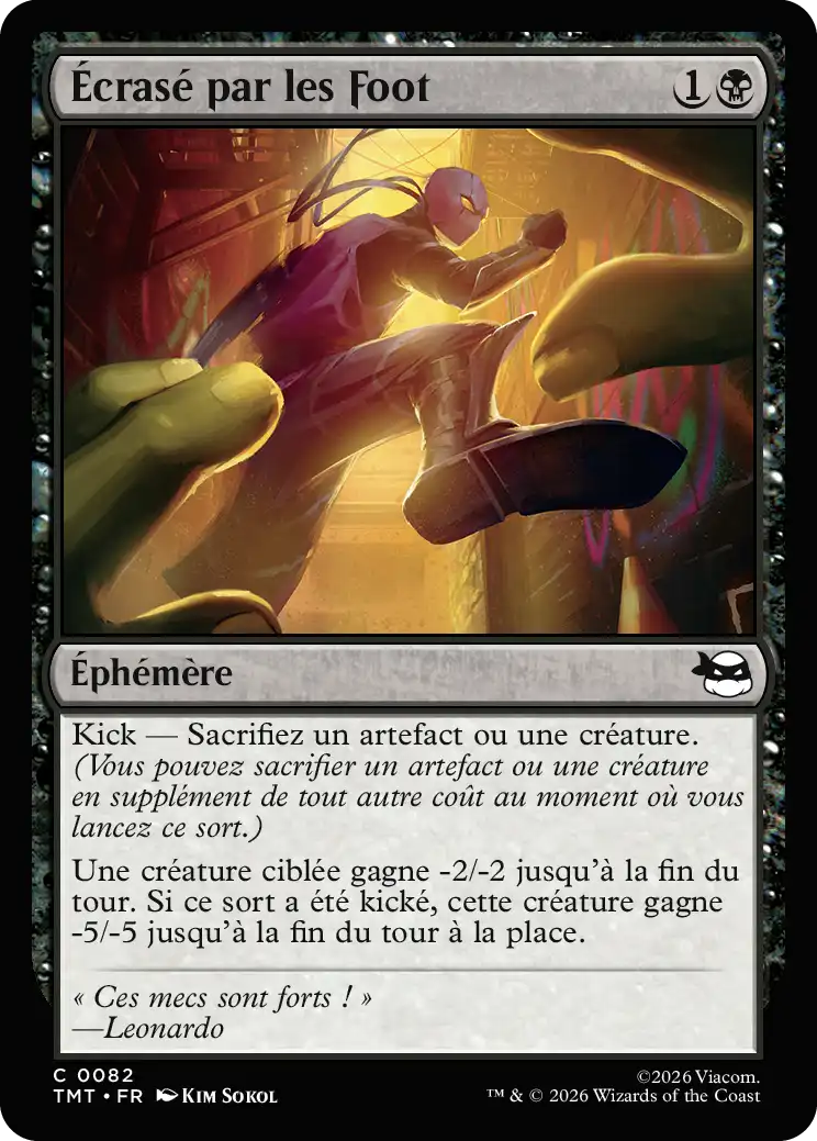 Kick — Sacrifiez un artefact ou une créature. (Vous pouvez sacrifier un artefact ou une créature en supplément de tout autre coût au moment où vous lancez ce sort.)