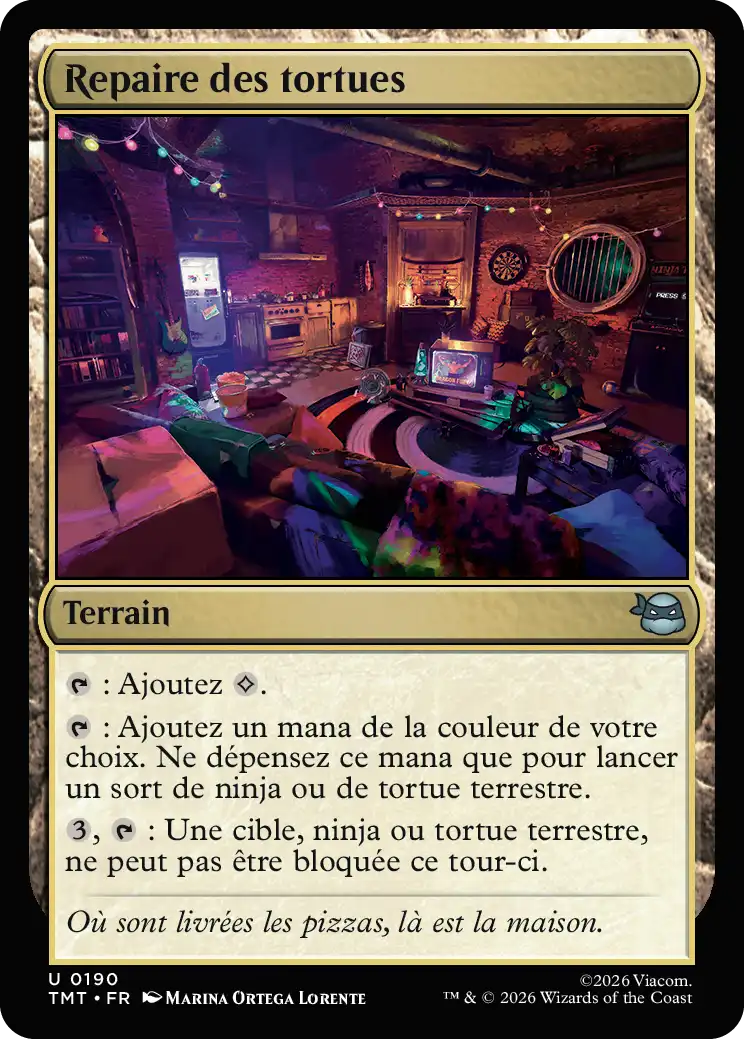 : Ajoutez un mana de la couleur de votre choix. Ne dépensez ce mana que pour lancer un sort de ninja ou de tortue terrestre.